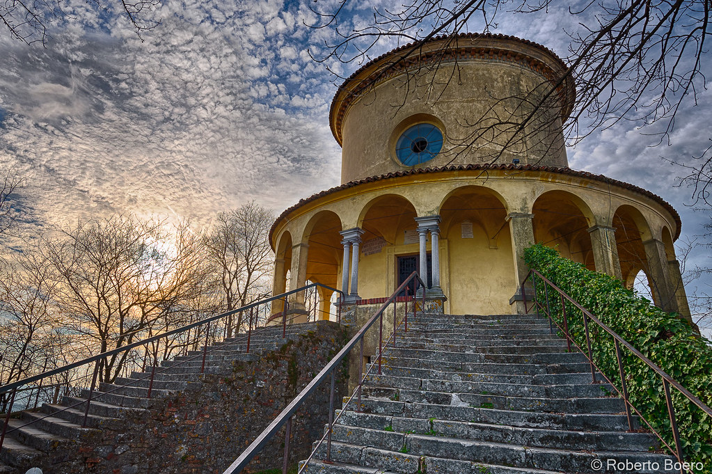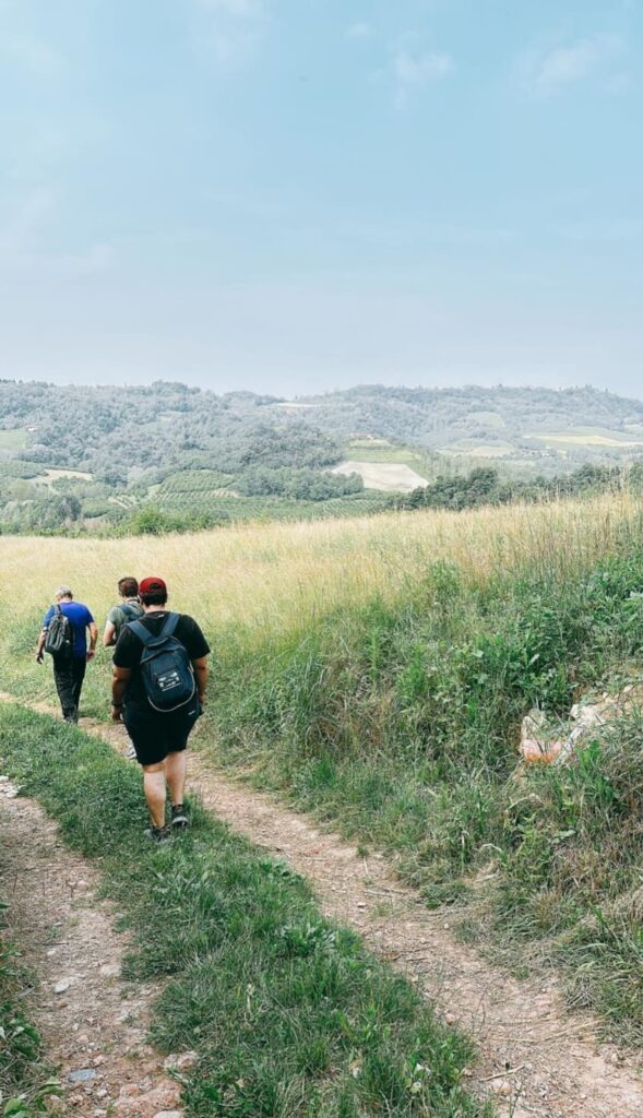 L’ ultimo giorno la ripartenza dal paese dei tartufi, Murisengo, in direzione dell’ultima tappa del nostro cammino: un paio di faticose salite ci hanno portati in prossimità del sacro monte di Crea (https://www.sacrimonti.org/sacro-monte-di-crea) da dove in lontananza abbiamo intravisto la cappella votiva più alta spuntare dalla vegetazione: il Paradiso.