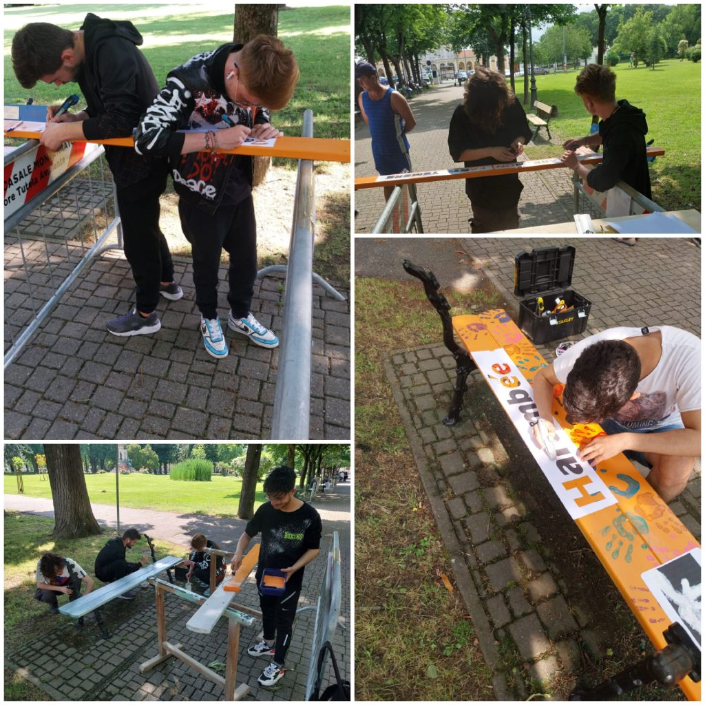 La realizzazione della panchina ha richiesto due giorni di lavoro, una certa pratica manuale e tanta creatività, oltre alla voglia di lavorare insieme e lasciare un segno.