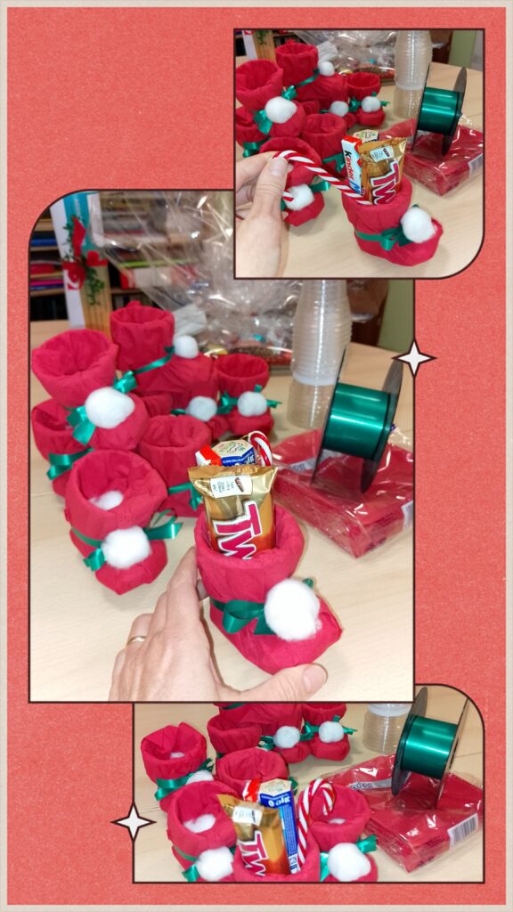 Ed ecco che basta mettersi attorno ad un tavolo a confezionare un semplice scarponcino rosso porta dolcetti per godere della presenza dell’altro, per sentire e far sentire che attendiamo insieme la Luce del mondo!
